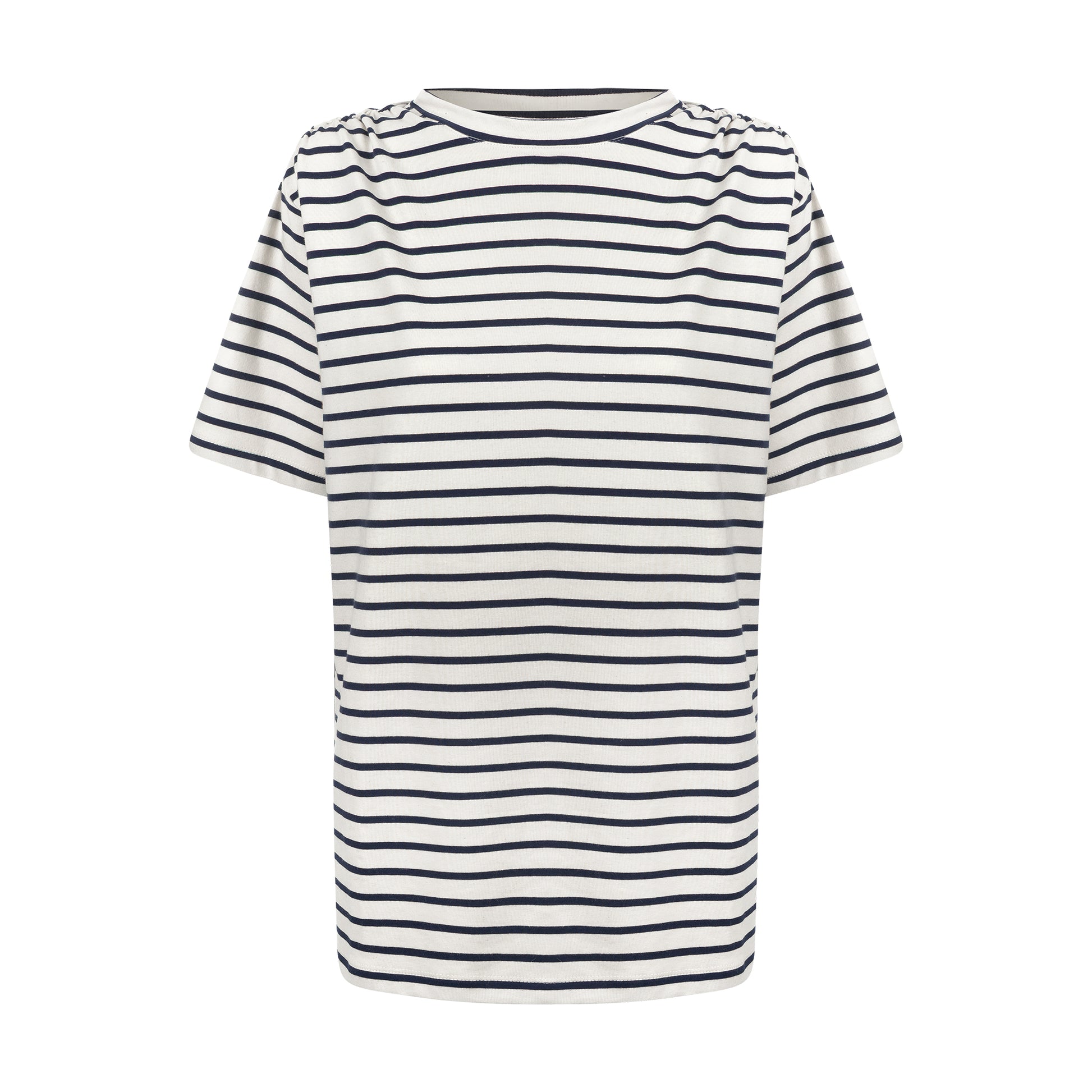 Camiseta de modelagem ampla, com aberturas laterais que garantem leveza e movimento. O detalhe em elástico nos ombros, assinatura da Verde, proporciona um caimento feminino, e moderno.