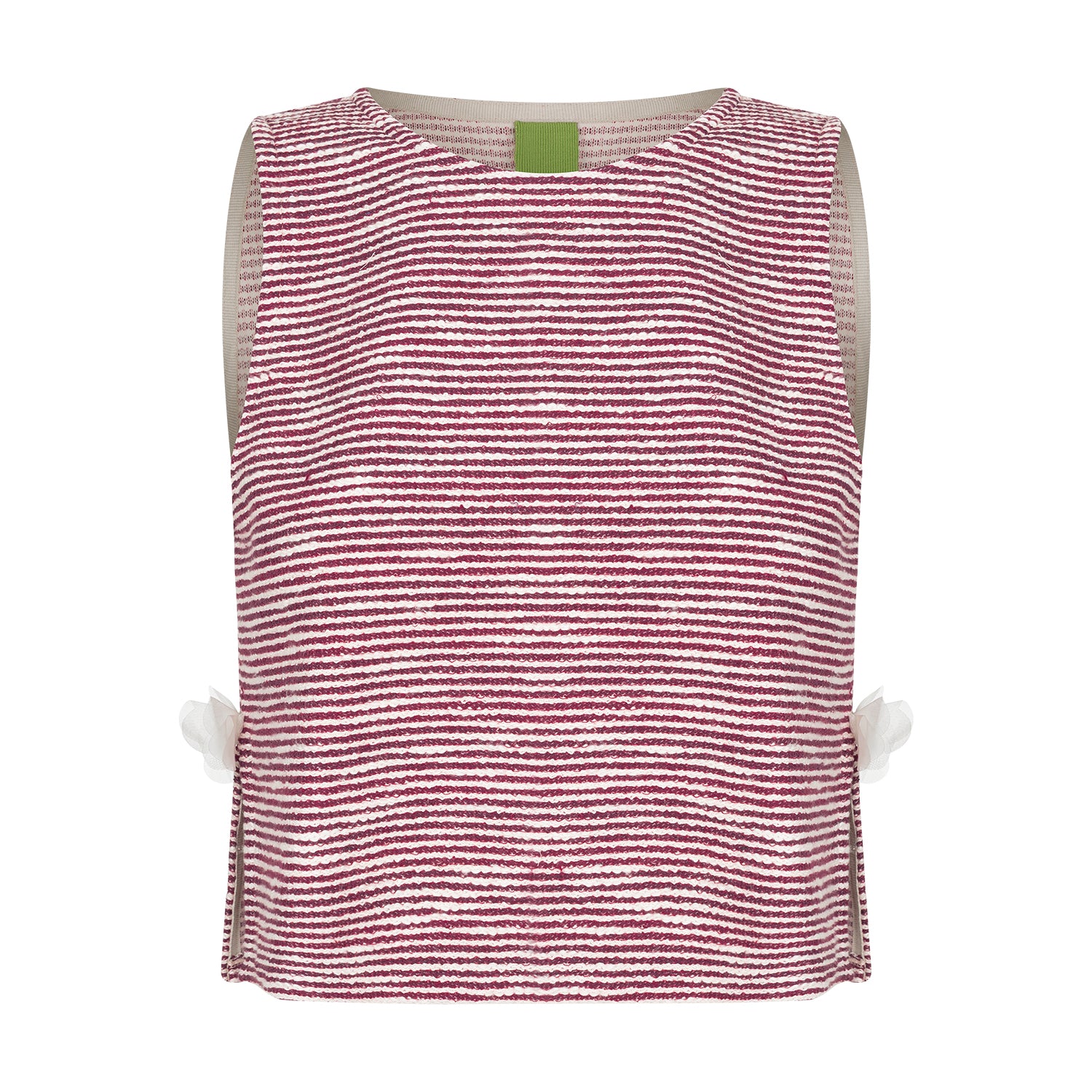 Regata soltinha com abertura nas laterais e uma delicada aplicação de flor. Confeccionada em tricô listrado, proporcionando um caimento que abraça o corpo. Uma peça atemporal e fácil de combinar em diversos tipos de look.